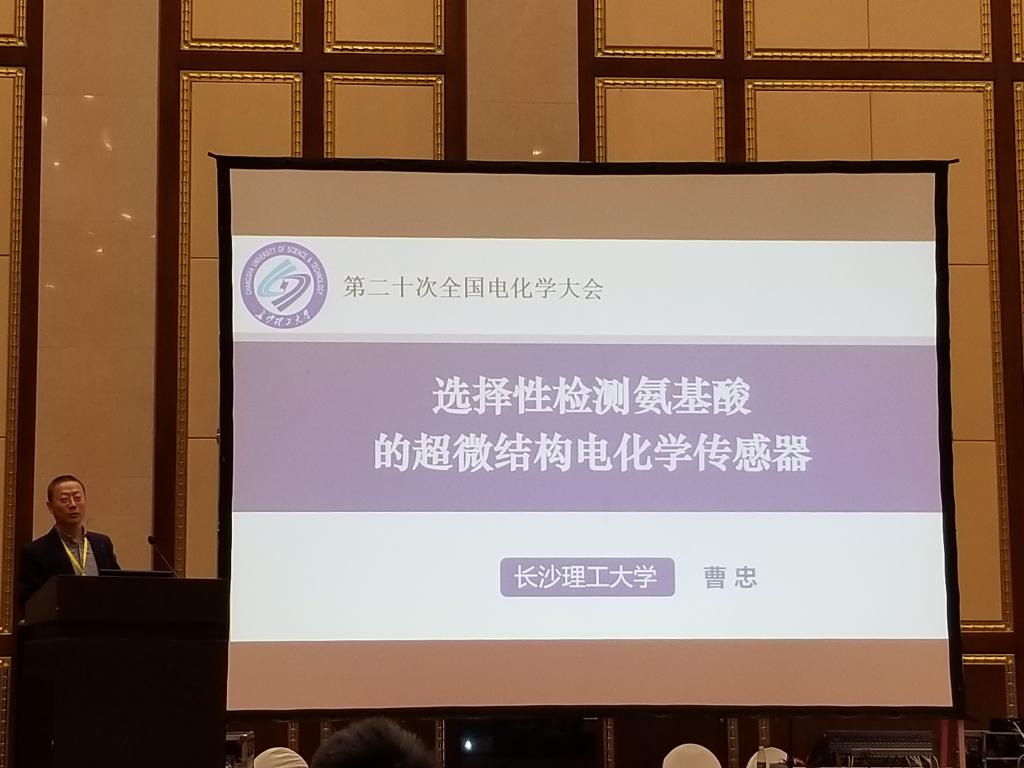 本次大会的主题是“推进产业发展的电化学”。在生物电化学与电分析化学分会场,中科院长春应用化学研究所董绍俊院士就“单原子纳米酶”做了精彩的主题报告,中科院化学研究所毛兰群研究员做了“脑神经电分析化学”的主题报告;永利集团88304官网曹忠教授应邀做了主题为“选择性检测氨基酸的超微结构电化学传感器”报告,详细阐述了近年来课题组在氨基酸分子超灵敏检测电化学传感领域的新方法新进展,引发在场专家学者的热烈讨论。