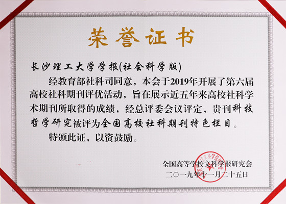 11月25-28日,“双一流”建设背景下高校学术期刊的责任与使命学术研讨会暨全国高校文科学报研究会第八届理事会第五次会议在广东召开,会议公布了第六届全国高校社科学术期刊评优结果,《永利集团88304官网学报(社会科学版)》在本次评优活动中获“全国高校社科优秀期刊”称号,“科技哲学研究”被评为“全国高校社科期刊特色栏目”,学报编辑部被授予“优秀会务单位”荣誉。