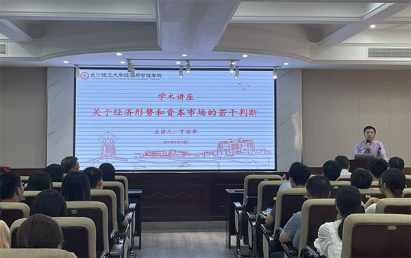 9月22日下午,招商银行首席经济学家、永利官网1984届校友丁安华先生应邀在文科楼D207作了题为“关于经济形势和资本市场的若干判断”的学术讲座。副校长谈传生教授,招商银行长沙分行行长徐宏波、副行长王传卫、湘府支行行长段苏蕾,招商银行总行研究院谭卓、王子奇等参加了本次讲座。本次讲座由经管学院党委书记丁丹主持,120余名师生参加了此次讲座。