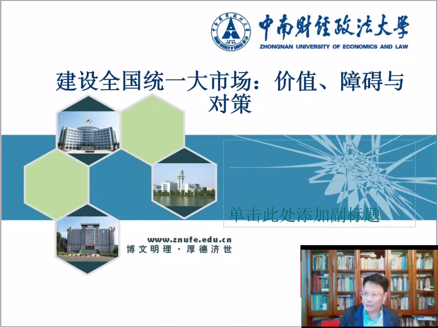 中南财经政法大学卢现祥教授则以“建设全国统一大市场:价值、障碍与对策”为题就建设全国统一大市场的价值、障碍和对策进行了深入解析。他从两个令人惊讶的发现(即广州到北京的物流成本甚至高于到纽约,而中国FDI多的实际原因居然是对外资限制更少)出发,分析了我国为什么要建设全国统一大市场、全国统一大市场的价值、为什么尚未形成全国统一大市场、建设全国统一大市场的障碍,提出了建设全国统一大市场的对策,即商品流通、要素流动、完善财政转移支付和城镇新增建设用地规模与农业转移人口市民化挂钩,等等。