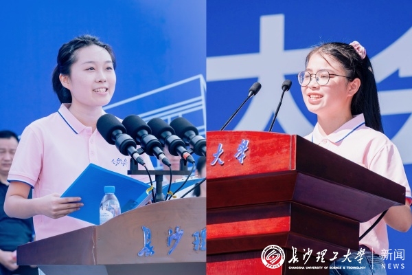 设计艺术学院杨袁一、经济与管理学院江思琦作为新生代表发言。她表达了对“长理人”身份的认同与自豪并表示将牢记“博学、力行、守正、拓新”的校训精神,砥砺求学、勇于追梦