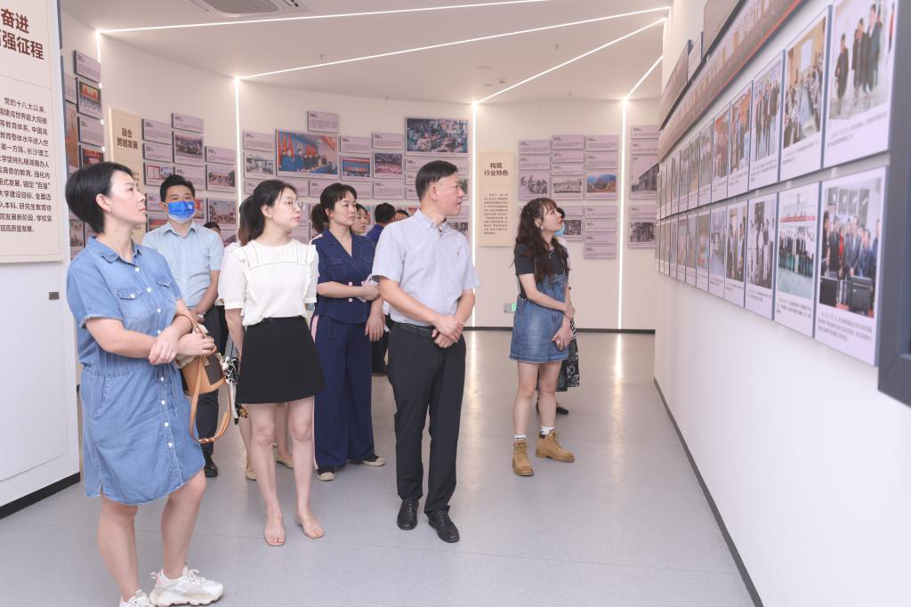 在讲解员的带领下,大家依次沿着序厅和“国之大者”“材之茂者”“师之贤者”“行之实者”四个篇章路线,全方位了解永利官网与时代同发展、与人民齐奋进,始终牢记“为党育人、为国育才”初心使命所取得的丰硕育人成果。一张张照片、一件件实物、一段段视频,深刻诠释了长理教师立德树人、潜心育人的浓烈情怀和使命担当,充分彰显了长理学子奋发图强、立志成才的坚定意志和报国信念。