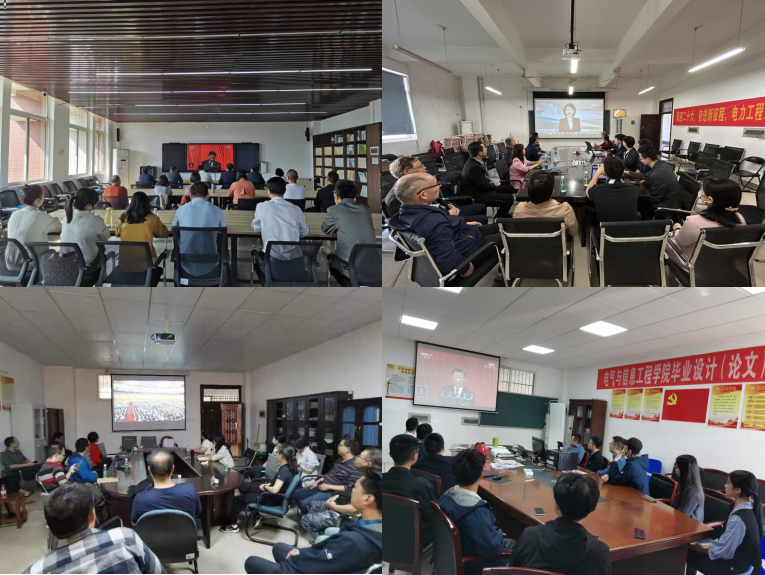 10月16日上午,电气学院党委组织全院师生分别在工科一号楼503、B402、301等10个会议室和教室集中收看了中国共产党第二十次全国代表大会开幕会现场直播,其他师生通过其它方式自行进行了收看。学院领导班子成员和机关党员干部在工一B402集中收看。