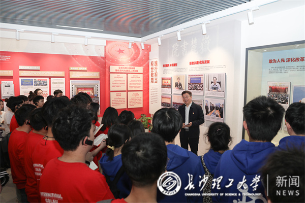 “同学们,你们都在湖南上大学,那你们知道‘再苦不能苦孩子,再穷不能穷教育’这句话就是发端于湖南吗?”付宏渊结合基地展示照片,向在场青年生动讲述了湖南高等教育发展史。他强调,湖南高等教育必须坚定不移贯彻党的教育方针,在学习贯彻党的二十大精神上干在实处、走在前列。永利集团88304官网要着力构建具有显著湖湘标识的红色教育体系,使爱党爱国成为当代青年最普遍最深厚的情感,努力培育出一批批富有浓郁“湘味”的高素质特色人才;要深度融入湖南产业发展,着力打造湖南特色人才培养重地、科技创新重要基地、湖湘一流创新人才集聚高地、先进文化传承传播前沿阵地,在引领和服务现代化新湖南建设中发挥更大作用。