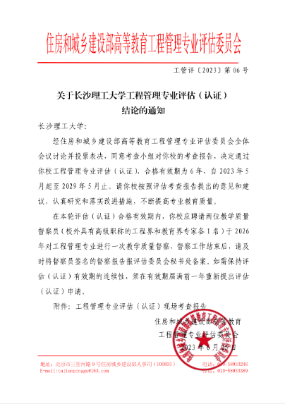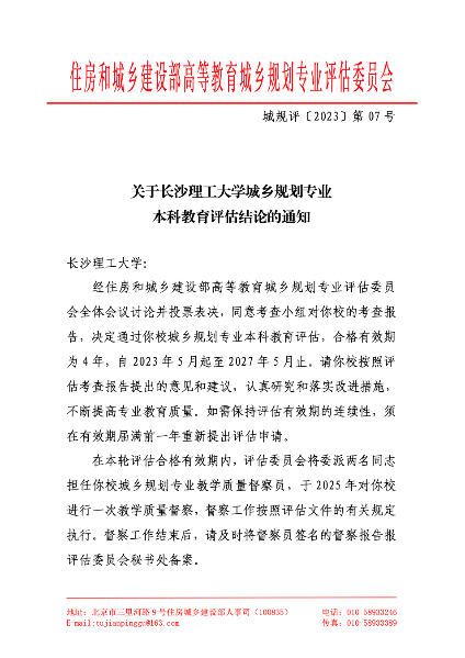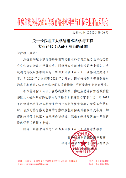 近日,住房和城乡建设部高等教育给排水科学与工程、城乡规划、工程管理专业评估委员正式公布了2023年专业评估(认证)结论的通知,永利官网水利与环境工程学院给排水科学与工程专业、建筑学院城乡规划专业、交通运输工程学院工程管理专业经过学校自评、专业评估委员会审核、专家组入校现场考查、结论审议等程序,最后经评估委员会全体会议讨论并投票表决,同意进校考查小组对永利官网的考查报告,决定通过以上3个专业评估(认证),合格有效期分别为3年、4年与6年。其中给排水科学与工程、城乡规划专业为首次通过住建部评估(认证),工程管理专业自2012年5月首次通过评估以来,本次为第二次通过复评。