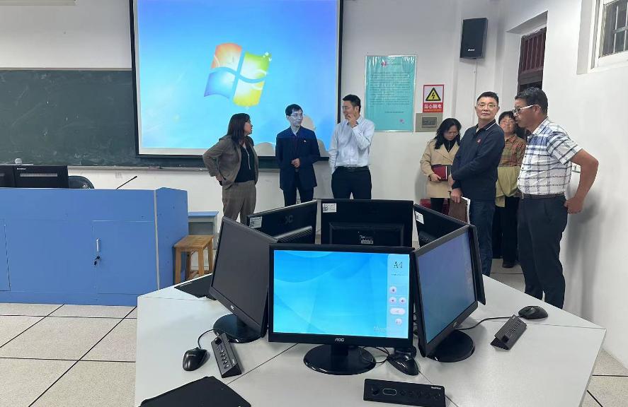 会议由胡海军主持,段胜峰致欢迎辞,季红琴作汇报,汇报分自评工作组织及进展情况、教育教学工作特色亮点、存在的问题及改进思路三个方面,主要介绍了外国语学院的自评工作的进展、九个特色亮点、三个主要问题。汇报后督查组对学院自评报告与支撑材料进行了仔细查阅,分两组与学院领导及教师代表、学生代表进行了座谈,围绕一流专业建设、师资队伍建设、课堂教学效果、教学竞赛以及学生专业学习状况进行了深入的交流。通过座谈,进一步强化师生对永利官网新一轮本科教育教学审核评估工作的了解。访谈结束后,督查组实地参观了学院同传、口译等实验室。