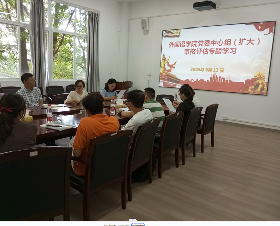9月11日上午,外国语学院党委在金盆岭校区3教222会议室组织召开中心组扩大审核评估专题学习。学院党政班子全体成员、系部主任、教工党支部书记、党政办主任、学工办主任辅导员参会。院党委书记文丽丽主持会议。