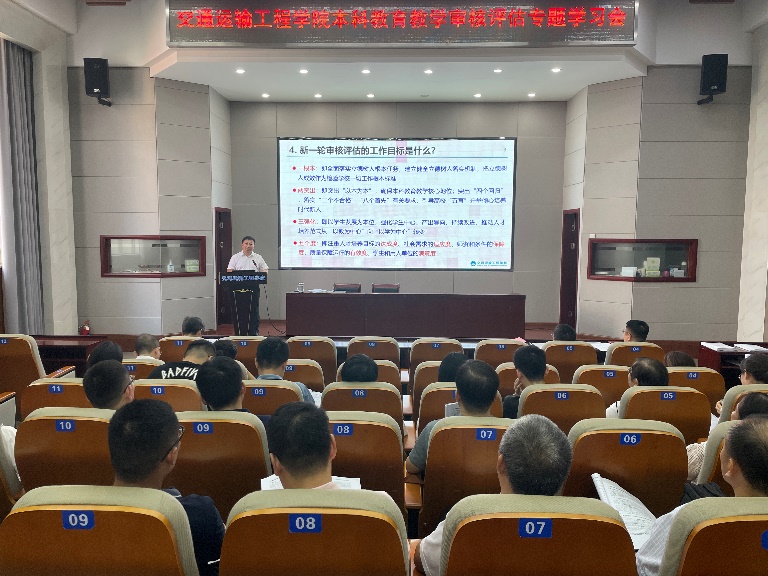 张军辉院长从多个角度带领参会人员共同学习了本科教育教学审核评估的特点、基本原则、工作目标、指标体系框架,审核评估的重点、对象、条件、周期以及程序。并结合永利官网及我院基本情况、办学定位,解释了永利官网选择“第二类第一种”的具体原因。