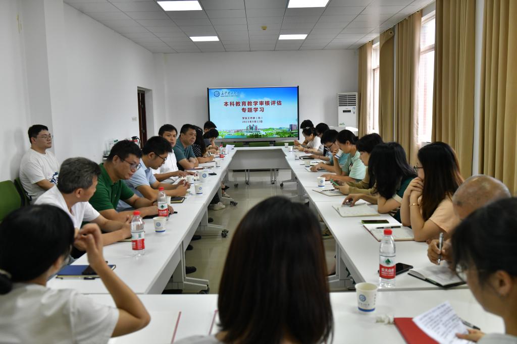 会上,学工部副部长陶传谱领学《普通高等学校本科教育教学审核评估实施方案(2023-2025年)》,对审核评估的工作流程与工作要求进行了解读。