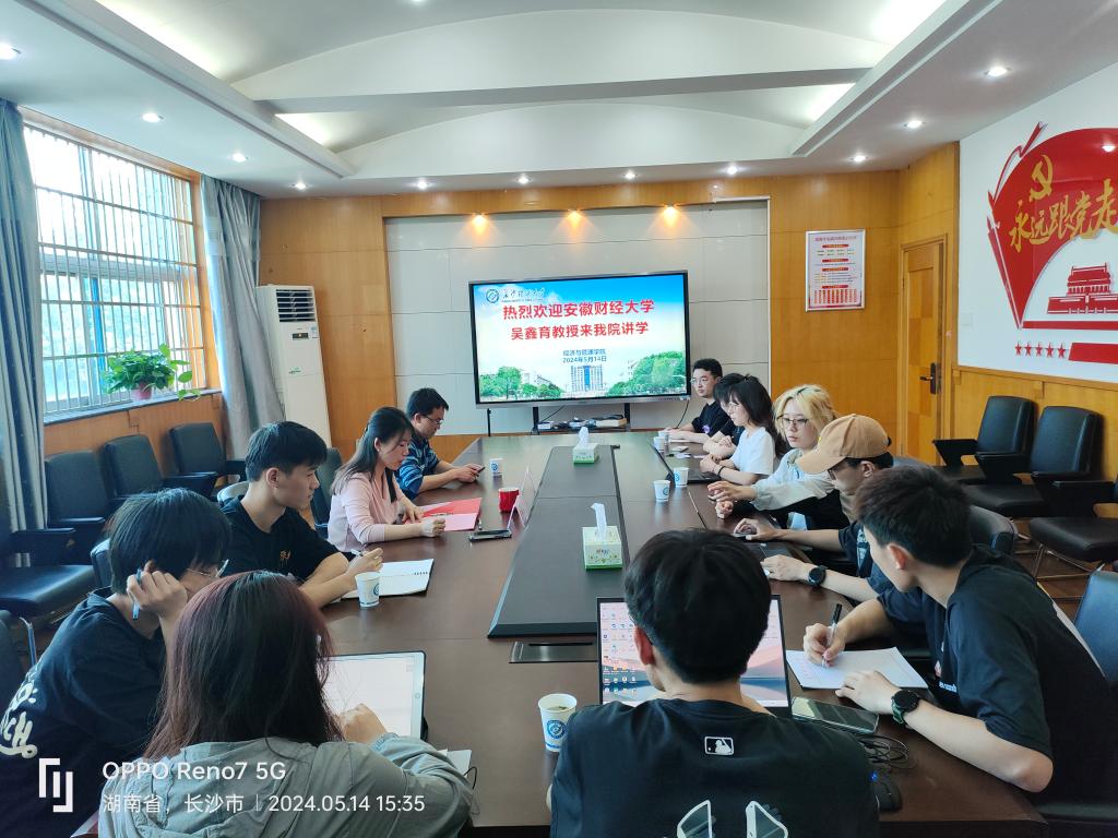 2024年5月15日,安徽财经大学金融学院副院长吴鑫育教授作为2024年金岭学术大讲堂第5期的嘉宾,在永利集团88304官网金盆岭校区经管大楼307,为我院师生带来了一场主题为“期权隐含风险厌恶与中国股市波动率预测”的学术讲座。讲座由经管学院副院长刘坚主持,30余名师生参加了本次讲座。