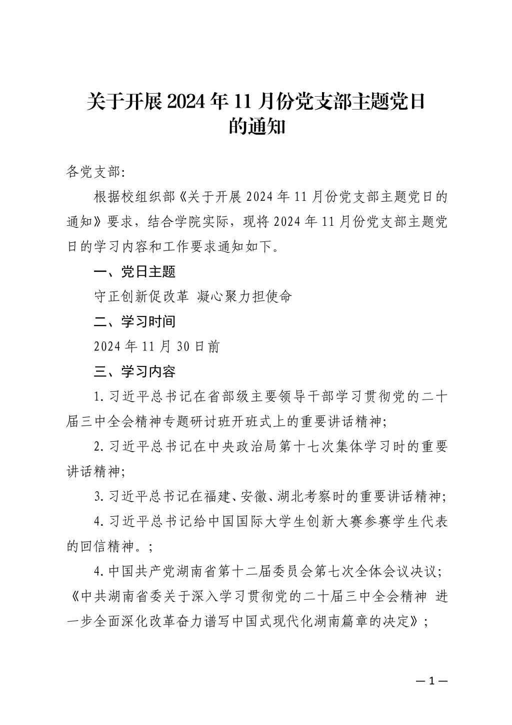 关于开展2024年11月份党支部主题党日的通知