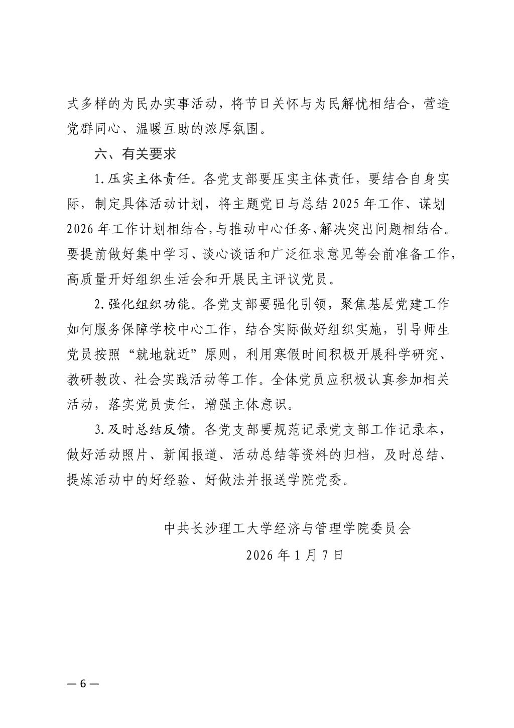关于开展2026年1月、2月党支部主题党日的通知