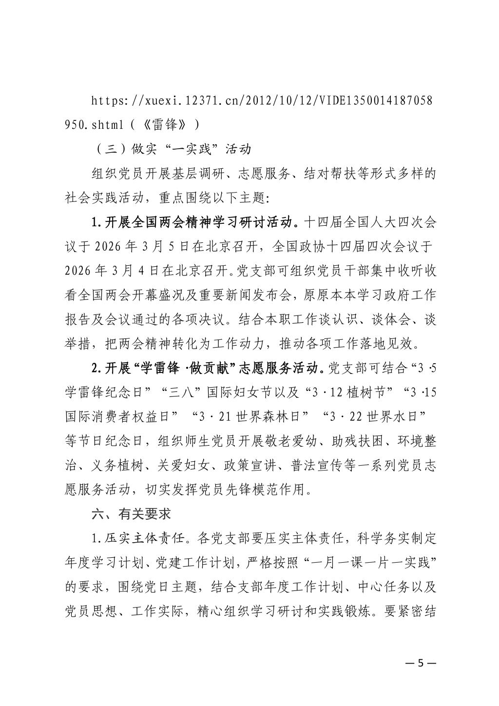 关于开展2026年3月党支部主题党日的通知