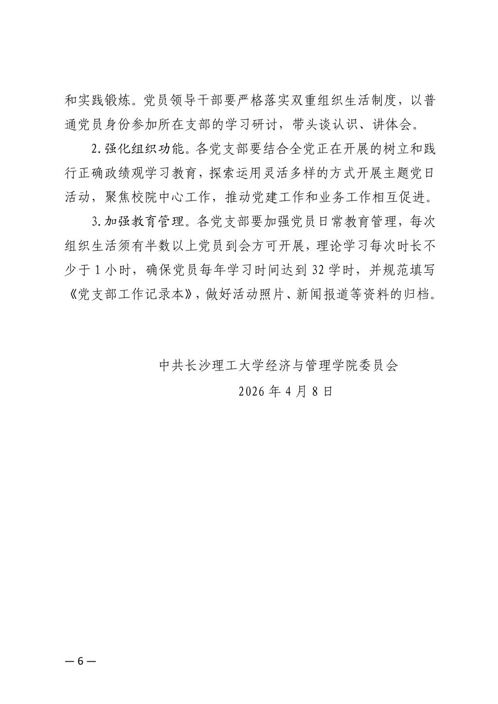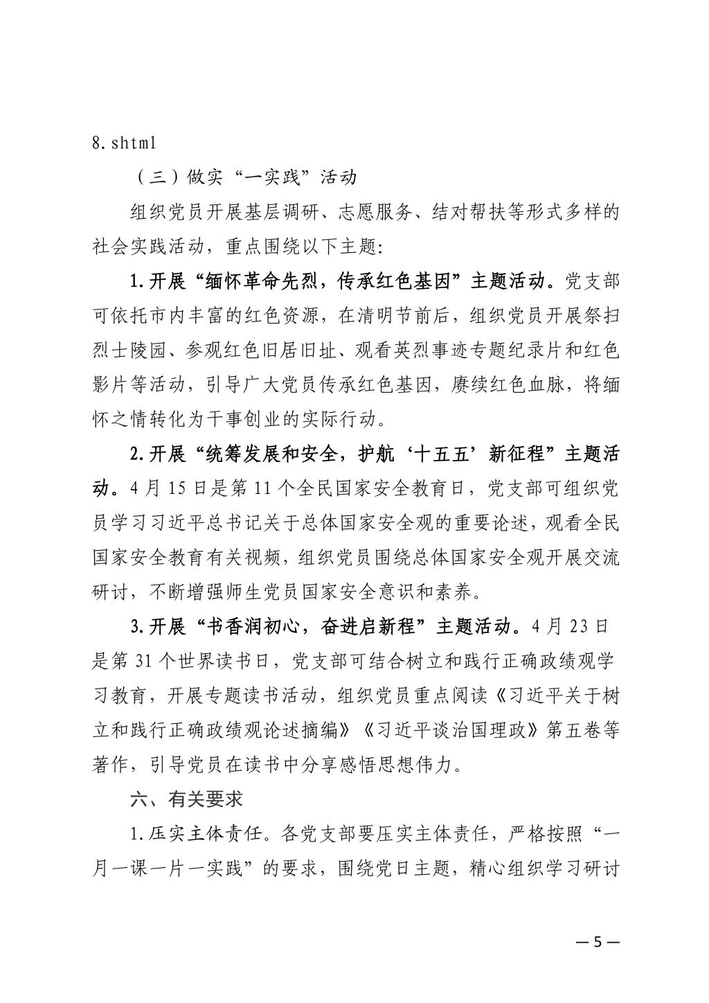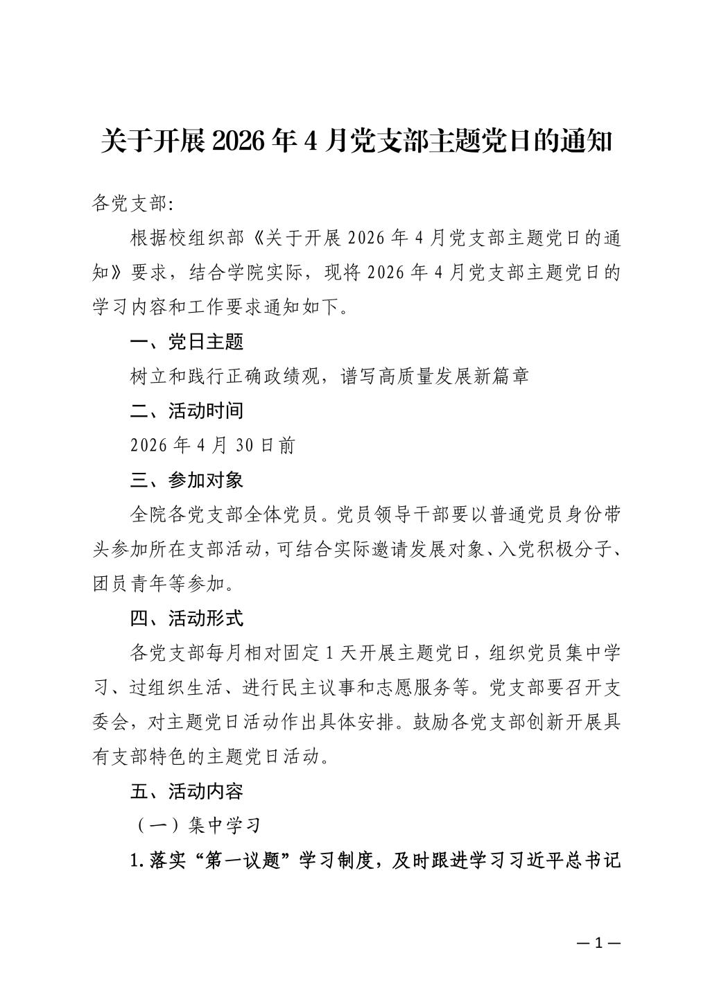 关于开展2026年4月党支部主题党日的通知