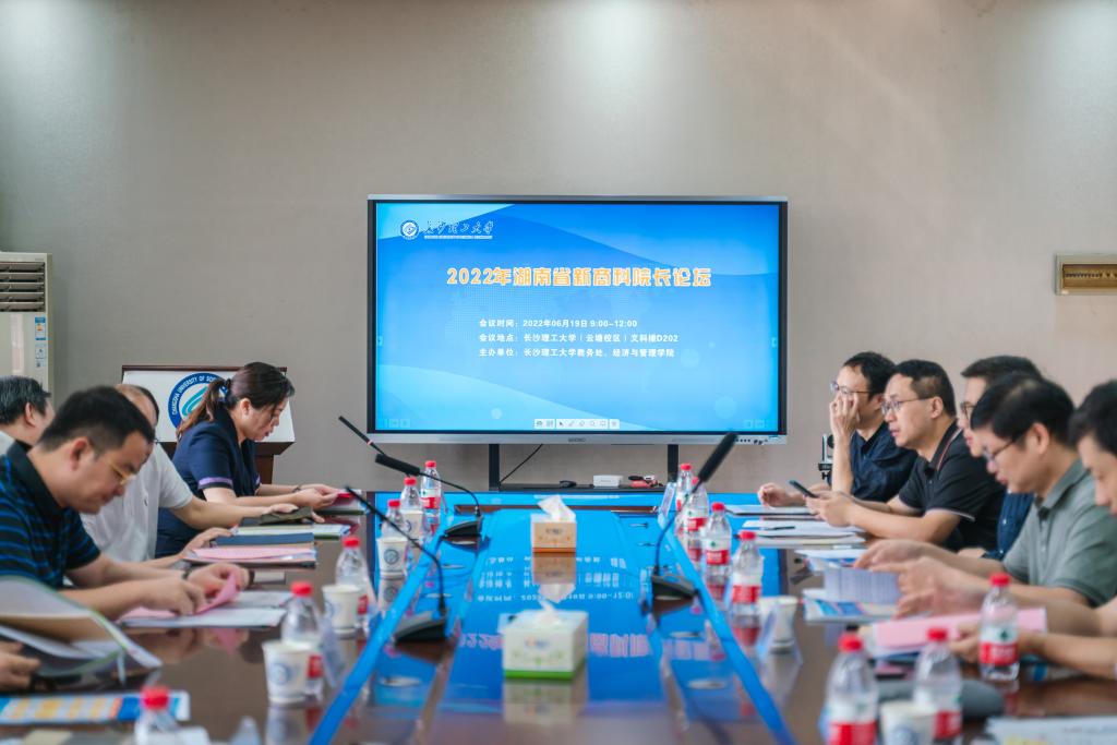 为进一步落实立德树人根本任务,探索新商科建设发展之路,促进学生专业实践能力和研究创新能力的提升,6月19日,由永利官网教务处、经济与管理学院共同主办的2022年湖南省新商科院长论坛在云塘校区文科楼D202隆重召开。湖南省教育厅高教处副处长王荣、“学创杯”竞赛全国组委会委员、杭州贝腾科技有限公司执行董事、总经理黄林、中南大学商学院副院长李大元、湖南大学工管院副院长周忠宝、湖南师范大学商学院副院长曹虹剑、湘潭大学商学院副院长醋卫华、湖南科技大学商学院副院长张志彬、湖南农业大学商学院副院长莫鸣、南华大学经济管理与法学学院副院长陈鸣及永利官网副校长曾祥君、教务处处长刘思强、创新创业教育学院院长蒋加伏、经管学院党委书记丁丹、副院长彭新宇、刘坚等30余人出席会议,会议由经管学院党委书记丁丹主持。