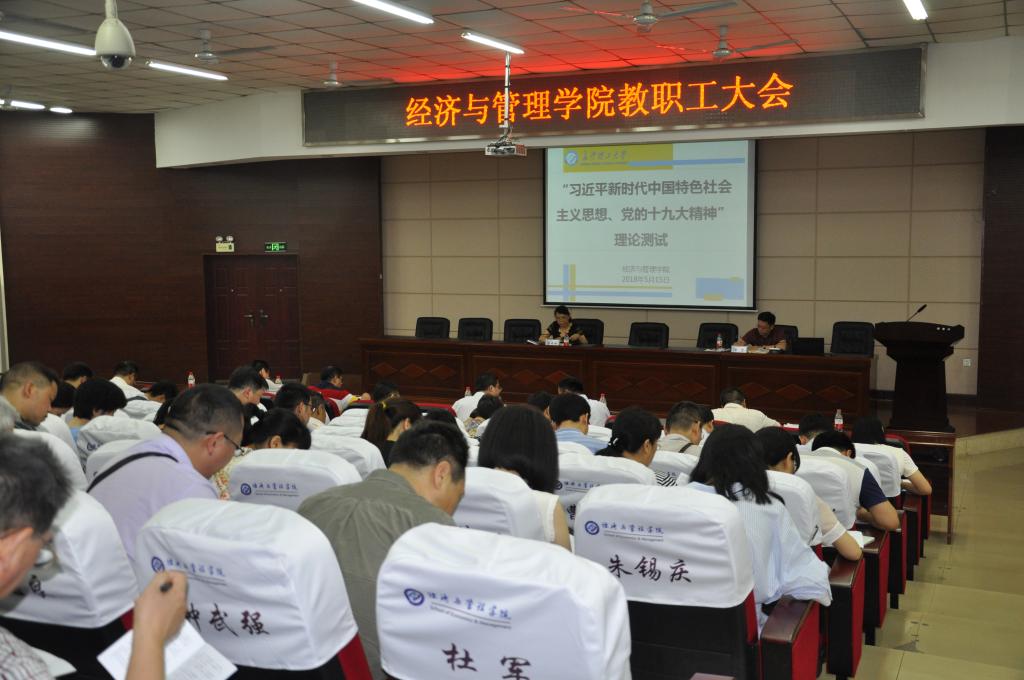 图为学院在全院教职工大会间隙进行理论知识测试