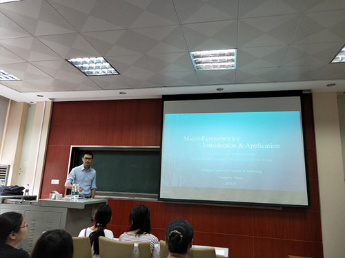 本次培训班共邀请了两位授课教师,一位是华中科技大学大学的杨继生教授、博士生导师、“华中学者”特聘教授。他是华中科技大学计量经济学学术前沿青年团队负责人,美国哥伦比亚大学访问学者。他的研究方向为“计量经济学:面板数据理论及应用”,这次他主讲的课程是“计量经济学理论与方法”。另一位授课教师是中南财经政法大学文澜学院硕士生导师高楠博士,他主讲的课程是“计量软件及其应用”。高楠老师的主要研究兴趣是发展经济学、财政与公共政策、制度经济学、政治经济学、家庭金融,曾先后在《经济研究》、《管理世界》等高端杂志发表论文10多篇。