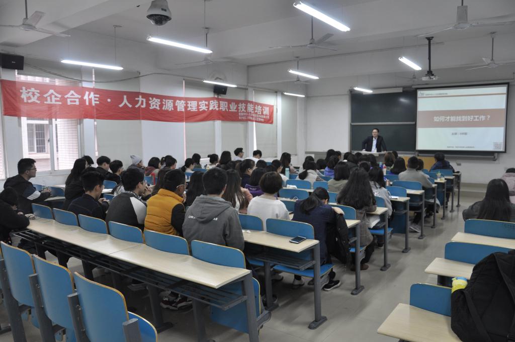 11月24-25日上午,我院人力资源管理本科专业和校企合作单位——湖南省楚源华创人力资源管理咨询有限公司,在永利官网举办一次“校企合作·人力资源管理实践职业技能培训”。由楚源华创李江华高级人力资源师,高级培训师为我们专业学生讲授了“职业生涯规划”“招聘面试”“简历撰写”三个主题。李江华先生结合企业实践中具体的真实案例系统深入地讲解了实操中注意要点。尤其是“招聘面试”和“简历撰写”的细节问题。通过此次校企合作,我们专业同学和老师感到受益匪浅,也增强了从事人力资源管理工作的自豪感和自信心。