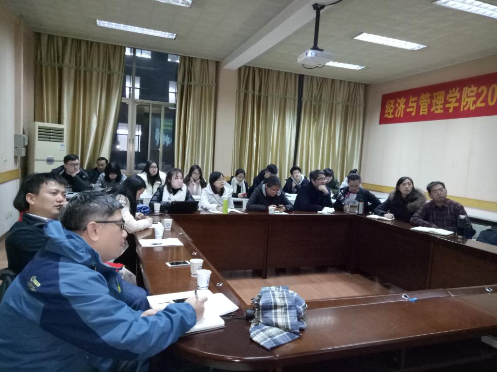 2018年12月26日晚7:00,学院邀请贺正楚教授与陈洁博士、黎建新教授在金盆岭7教204和206分别举行了2019年国家社科基金和国家自科基金申报工作指导会,学院部分教师和研究生共70余人参加了讲座,副院长张新华教授主持讲座。