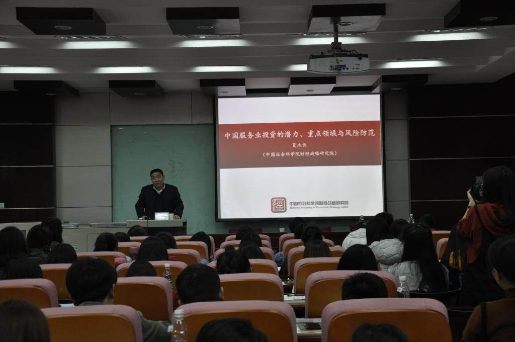 2019年4月12日下午2:30,中国社会科学院财经战略研究院夏杰长教授在金盆岭校区7教212,为我院师生作了题为“中国服务业投资的潜力、重点领域