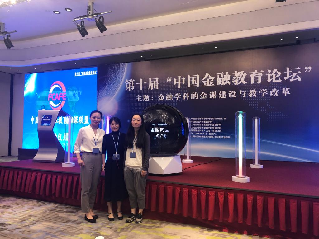 2019年5月25日第十届“中国金融教育论坛”在上海举行,论坛主题是“金融学科的金课建设与教学改革”,本届论坛由中国高等教育学会高等财经教育分会、中央财经大学金融学院、上海立信会计金融学院共同主办,《经济研究》、《财经研究》、《国际金融研究》、《金融论坛》等期刊编辑部、高等教育出版社以及阵图网络科技等作为支持单位或赞助单位。本届论坛汇聚了诸多的权威专家、学术精英,有来自全国60多所高校和机构的近200人参会。金融系尹筑嘉、丁琪琳、文瑶玲三位老师受邀参加了本届论坛。