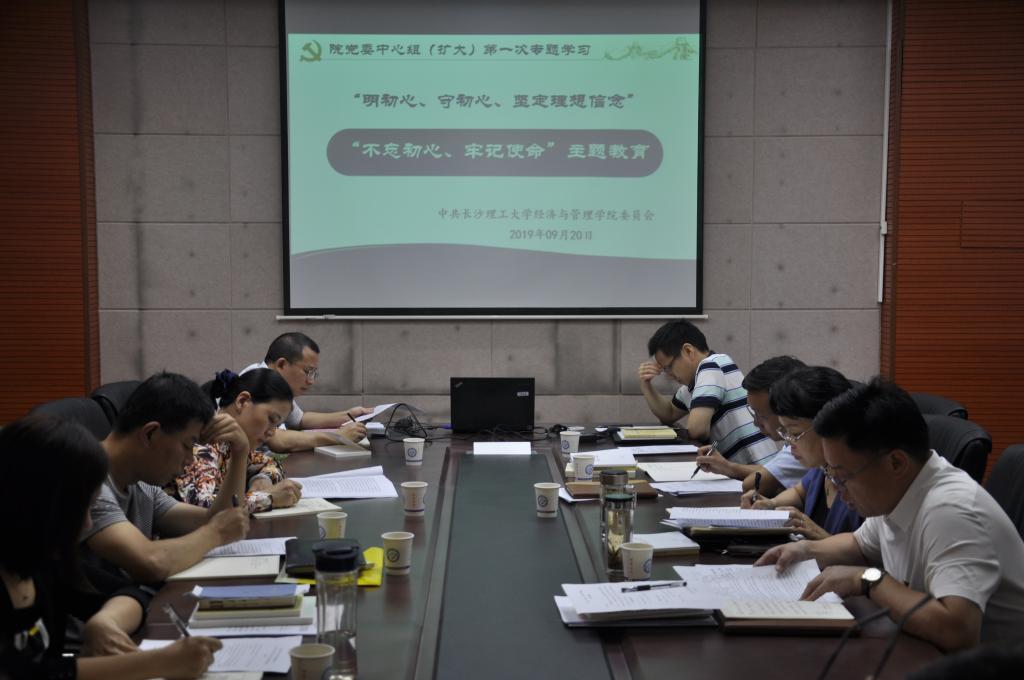 9月20日上午,经管学院党委中心组(扩大)在文科楼C502召开了“不忘初心、牢记使命”主题教育第一次专题学习。院主题教育领导小组组长、院党委书记王宏主持,院党委中心组成员及学院各系室党支部书记参加学习。