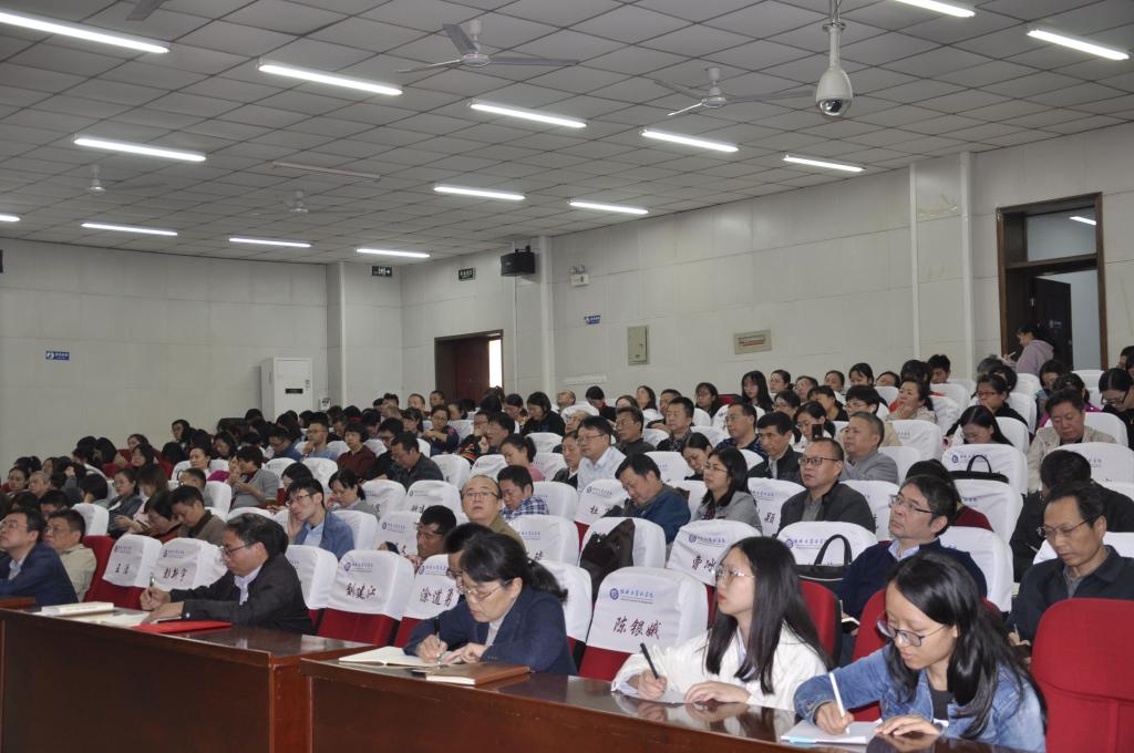 1105日下午,经济与管理学院“不忘初心、牢记使命”主题教育专题党课在云塘校区文科楼A200举行。院主题教育领导小组组长、院党委书记王宏以“立德树人与大学文化建设”为主题,给学院全体教职工及学生党员代表讲了一堂生动的党课。