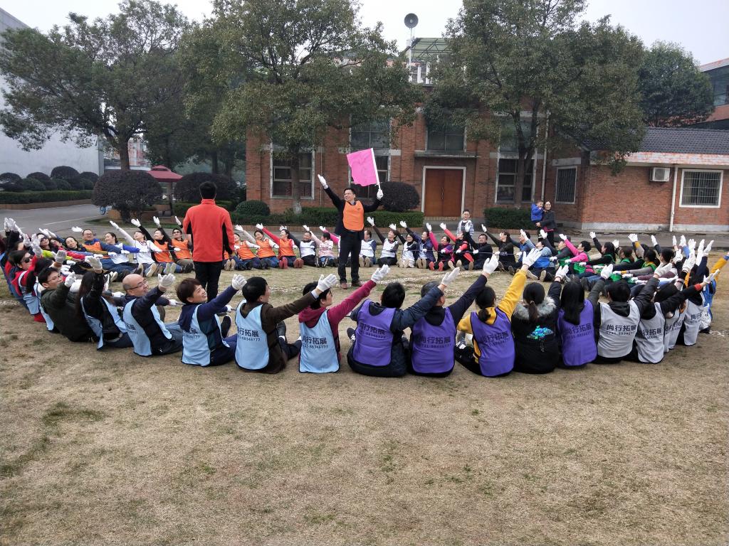 经过第一阶段的破冰游戏后,老师们彼此相互认识熟悉。经过随机组合之后,全体老师共分成8个小组参加本次拓展活动。每个队伍由队员们自发选出队长、旗手,在十分钟之内完成队名、队呼、队歌及队形设计展示的任务,大家都在规定时间内高质量地完成了工作任务,并展示了每个团队的精神风貌,很好地完成了小组团队文化建设