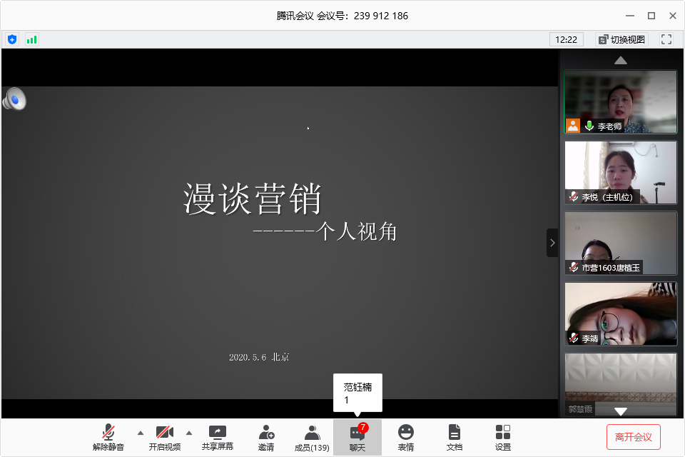 2020年在新型冠状病毒感染肺炎疫情的影响下,原本高校正常毕业实习环节也受到了一定的影响。为了保证2020届本科毕业实习环节的顺利开展,让实习工作保质保量完成,在经管学院和企管系的统一部署下,市场营销专业利用腾讯会议在线直播平台将毕业实习搬上云端,邀请了七位实践界的精英在2020年5月1日—5月21日,为市场营销专业全体应届毕业生举行了七场远程在线讲座。