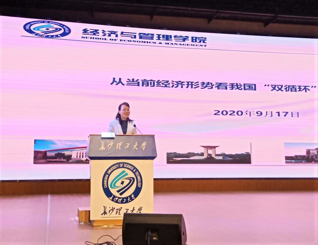 陈院长以“从当前经济形势看我国‘双循环’新发展格局”为主题,从今年年初爆发的新冠疫情对我国宏观经济的影响,深入分析我国经济当前所面临的机遇和挑战,指出国内国际双循环是中国百年未有之大变局的必然选择,并在此基础上就如何实现双循环提出了相应的解决措施,倡导畅通双循环、培育新优势。讲课伊始,陈院长指出受疫情影响,上半年经济走势呈现“V”字型,尽管疫情对我国经济造成了强烈冲击,但是在党和政府的不懈努力下,化“危”为“机”,后期经济迅速恢复并呈良好持续增长态势。陈院长指出,习近平总书记多次强调要“逐步形成以国内大循环为主体、国内国际双循环相互促进的新发展格局”,并从国际和国内两方面阐述了我国实行“双循环”的必要性和可行性,并主张从“三个方面”和“四个链条”来构建双循环。最后,陈院长指出数字经济作为我国重要生产要素,展现出了强大的发展潜能,也是推动我国“双循环”新发展格局的新引擎。