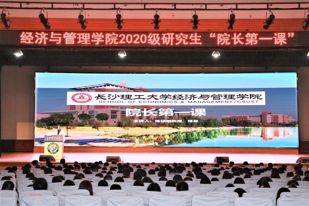 2020年9月17日下午15:00,经管学院2020级研究生“院长第一课”在金盆岭校区5教大礼堂如期开讲,此次课堂由学院院长陈银娥教授主讲,副院长王治教授主持,院党委副书记唐青、研究生培养办全体老师、研究生辅导员和2020级363名硕博研究生一起聆听了本次讲座。