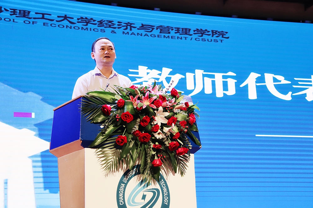 教师代表谢志明教授在发言中希望全体新生能够顺新时代之势,学新时代之知,时刻关注时代变迁,不断增强学习交流,将自身发展融入新时代发展进步之中,实现新时代之魂。会计1802班樊洁同学从自我认知、理想信念、自我管理三个方面,并结合自己在经管学院的经历和收获,勉励新同学放下担忧与顾虑,坚定理想,大胆前行,去体验属于自己的精彩人生。研究生20级工商管理班盛熙然同学在发言中和大家一起分享对“不忘初心,方得始终”的理解,她觉得要不忘披荆斩棘,珍惜前路漫漫;不忘谆谆教诲,勇担时代使命;不忘学生本分,“博学、力行、守正、拓新”。本科生新生代表财管2004班朱远达同学倡议同学们心存感恩、怀揣梦想、逐梦前行,既仰望星空、心怀梦想,又脚踏实地、逐梦前行。只争朝夕、不负韶华,在火热的青春中放飞人生梦想,在拼搏的青春中成就事业华章。