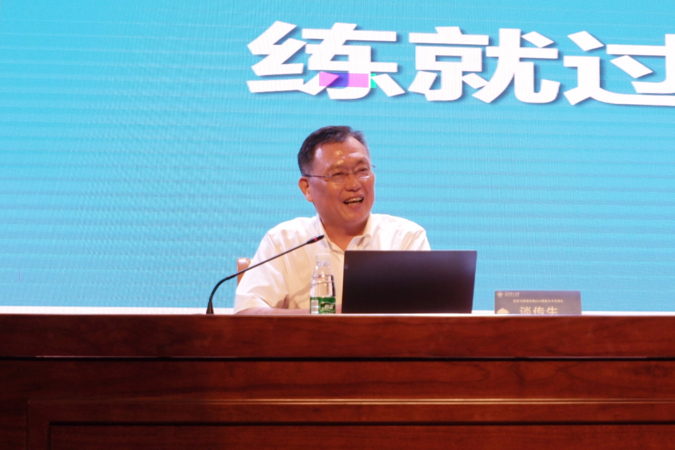 谈校长以“练就过硬本领、勇担强国使命”为主题,从“克服难关、乘风破浪、砥砺奋进”三个方面展开讲述。讲课伊始,谈校长指出今年年初爆发的新冠肺炎疫情,正是因为党的领导坚强、中国制度的巨大优势以及伟大中国人民深厚的家国情怀,我们才能攻坚克难、战胜疫情,才能在金秋九月相遇长理。接着,谈校长引用习近平总书记对青年的寄语,例举了国家功勋模范人物的典型事迹,勉励青年大学生以“利他、无我”点燃青春梦想,以“力行、实干”激昂奋斗人生,成就最好的自己。最后,谈校长从历史沿革、师资力量、学科建设、科研成果四个方面展现了永利集团88304官网锐意进取、砥砺前行的精神风貌,从校训释义、校风学风、“铺路石”精神展现了长理人严谨、务实的求学态度,从学院和专业简介展现了经管学院国际化的教学模式和多元化的教学理念。谈校长希望全体经管20级学子们能在大学致力于全面发展,用奋斗圆梦长理,并祝愿同学们前程似锦、学有所成。