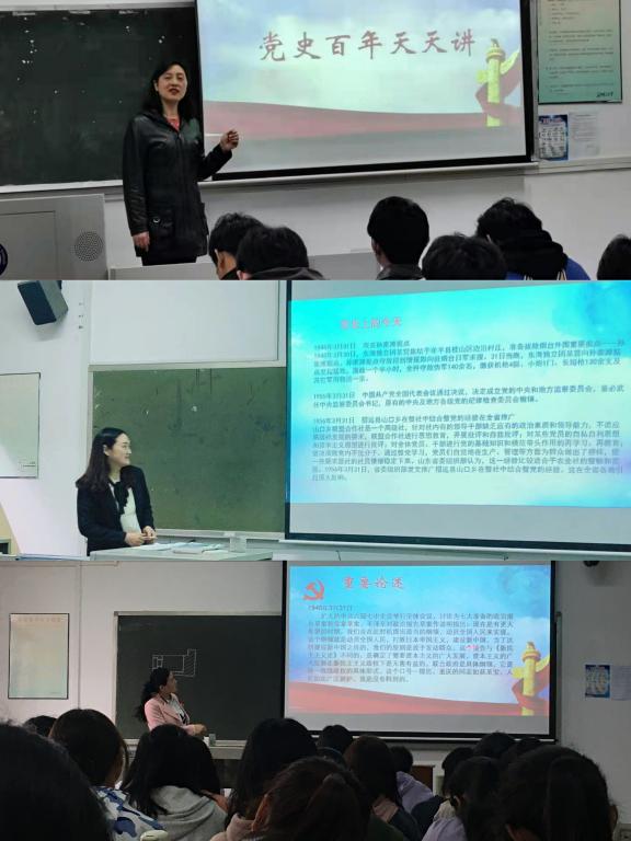 学院党委为推进党史学习教育深入开展,确保学习教育实效,一是广泛宣传发动。先后于3月18日、3月19日召开了两个动员会,举行了两场专题党课(报告),增设“党史学习教育专栏”,并通过融媒体营造学习教育氛围。二是领导先行先学。3月17日学院党委进行了中心组学习,围绕“中国共产党为什么能”“马克思主义为什么行”“中国特色社会主义为什么好”,进一步学深悟透。三是创新学习模式。实施“领导领学+党员悟学+岗位践学”党史学习教育模式。“领导领学”——学院党委班子成员深入联系支部参加集中学习,围绕学习主题领学。“党员悟学”——每次集中学习由2-4位普通党员谈体会、谈感悟。“岗位践学”——教师党员围绕“学党史、悟思想、育新人”,学生党员围绕“学党史、悟思想、跟党走”,立足岗位践行初心使命。四是延续传统做法。沿用“不忘初心、牢记使命”主题教育编印口袋书的做法,围绕“中共党史、新中国史、改革开放史和社会主义发展史”的“四史”学习教育,学院党委特编印、发放《“四史”知识学习手册》口袋本供大家随时学、随时记、随时悟,在学懂、弄通、做实上下功夫。五是深化课程思政。将“四史”教育有机融入课程思政,推出课间5分钟微党课《党史百年天天讲》,党员教师利用课间为同学们讲述红色经典故事、党史上的今天等,宣传党百年奋斗而光辉的历程,将党史学习教育引向深入。