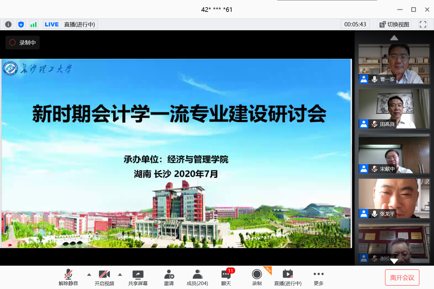 为深入贯彻《教育部办公厅关于实施一流本科专业建设“双万计划”的通知》精神,推进永利官网会计学国家级一流本科专业建设,7月12日下午,学院组织承办了新时期会计学一流专业建设研讨会,研讨会采取线上线下相结合的形式进行。参加会议的有永利集团88304官网校长曹一家、副校长叶泽、教务处处长刘朝晖、学院院长陈银娥、院党委书记王宏、全体院领导,包括南开大学、中山大学、湖南大学、中南大学、南京航空航天大学、北京工商大学、对外经贸大学在内的百余所高校近千名师生通过腾讯会议或直播平台参加本次研讨会。学院财会系、信管系全体教师在金盆岭校区7教212教室现场参会。会议由副校长叶泽主持。