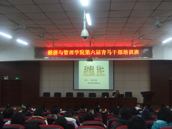 1125下午14:50,经管学院第六届青年马克思主义者培养学院开班仪式暨理论学习第一讲“我的情绪,我做主”在文科楼A200顺利举行。经管学院分团委书记陈钰汀及心理辅导员李丽兰作为嘉宾出席。学生会全体成员及各班班长、团支书参加了本次会议。