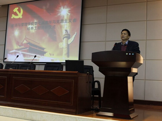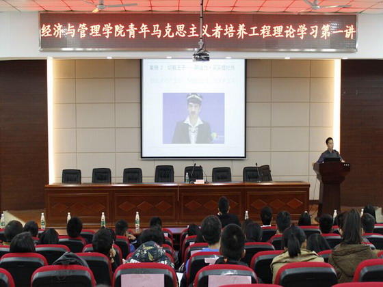 11月10日下午,经管学院第七期青年马克思主义者培养工程理论学习开班仪式暨第一讲在文科楼A200举行,经管学院党委副书记彭玉楼、校团委副书记陈仁凯、经管学院分团委书记陈钰汀出席此次活动,经管学院分团委学生会全体成员及各班班长团支书、社团负责人、特色团体负责人参与学习。