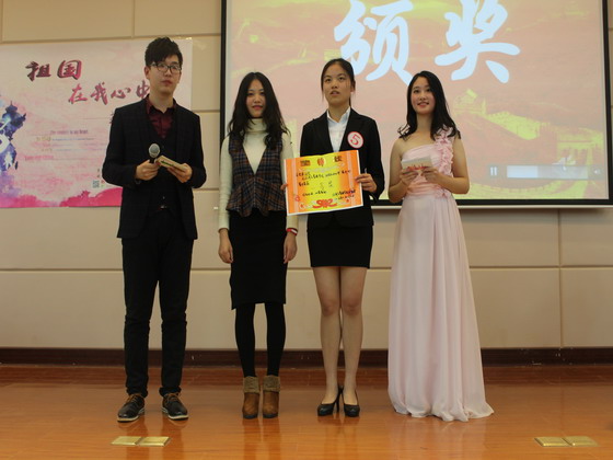 关工委常务副主任陈均杰老师致开幕词,陈老师表示举办本次活动,是为了培养同学们以爱国主义为核心的民族精神,展现同学们朝气蓬勃、积极向上的精神风貌,希望各位同学们努力学习专业知识,将来学有所成报效祖国。此次决赛共由三个环节组成:自我介绍,命题演讲以及即兴演讲。最终成绩以专业评委及大众评审综合评判作为考量,并同时进行最佳人气奖网络投票。随着大屏幕倒计时数字的变换,比赛正式开始,8位选手依次亮相,以自制PPT作为背景,进行1分钟的自我介绍,并宣读了自己的比赛宣言。第二环节为命题演讲环节,8位选手以“祖国在我心中”为主题,按赛前抽签顺序依次进行了3分钟的立式脱稿演讲。他们或激情澎湃,或深情款款,用心灵深处的真实情感去表达自己的满腔爱国情怀。对于每位选手的表现,评委们依次进行了专业性、针对性的点评,并给出评判,加以大众评审的投票数,综合一、二轮成绩,6位选手跻身最后环节。期间,大屏幕播放了选手们的加油视频,给予紧张的选手们一份慰藉与鼓励。比赛进入最后冲刺阶段,6位选手依次抽选题号,进行了为时两分钟的即兴演讲。选手们在30秒钟的准备时间后,便开始了各自主题的演讲,选手们都台风稳健,陈述清晰,并通过互动来调动全场气氛,对于主题,更是加以实事案例进行佐证支撑,提及钓鱼岛事件,九八五砸车事件,以及最近火热的日本马桶事件;除此外,选手们还谈及了“为中华之崛起而读书”,并表达着自身的满腔激情。正如评委所言 “选手们总体水平很强,但演讲技巧方面有待进一步提高,希望大家可以通过观看演讲视频等方式得到进步,更加希望大家今后可以更加积极的参与主题演讲”。