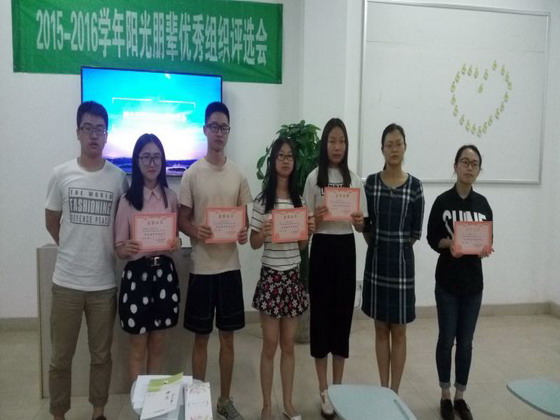 通过学院朋辈心理工作部代表汇报工作,结合部门平时工作表现,由评委进行综合评分。此次评选中,平时工作表现占70%比例。通过综合评比,我院朋辈心理工作部获得总分第一名的好成绩,荣获2015-2016学年阳光朋辈优秀组织奖。全校只有五个学院朋辈心理工作部获此殊荣。能喜获佳绩,这与经管学院朋辈心理工作部扎实、活泼、创新的工作风格是分不开的,也是对部门工作的极大肯定与鼓励。相信我院朋辈心理部在学校指导、学院关心以及师生的共同努力下,定能更好地为学生服务。