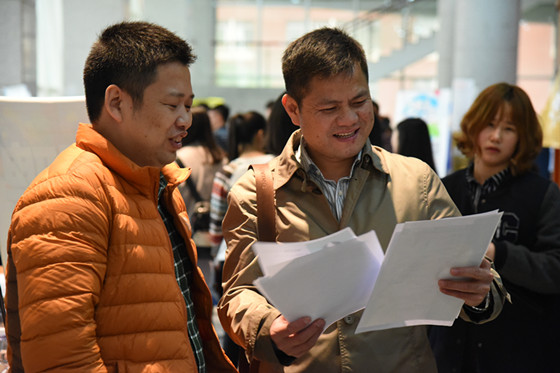 28日下午2:00专场招聘会开始后,学院2017届毕业生纷纷向用人单位投递简历,咨询相关事宜。学院党委书记庄创奇、副书记艾楚君、就业专干计潇深入招聘会现场,向用人单位表示欢迎、介绍学院专业设置和毕业生情况、积极推介毕业生。学院领导与招就处就业指导主任干事朱广峰就学院目前毕业生的就业情况交换了意见。招聘会现场,学院党委书记庄创奇、副书记艾楚君就参加应聘毕业生关于创业政策、面试技巧等问题进行了详细的解答。