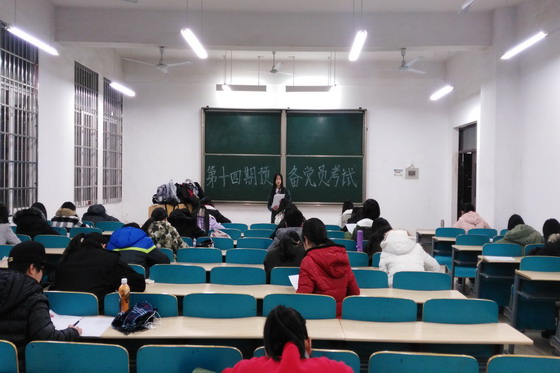 为了考察预备党员理论学习成果,进一步检验学生预备党员对党性修养、理想信念、党员意识、宗旨使命的认知,11月24日下午18:00,经管学院第14期预备党员理论考试于文科楼E101顺利举行,46名本科生预备党员参加了此次考试。