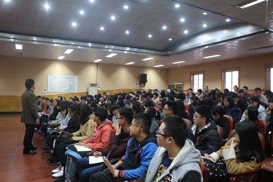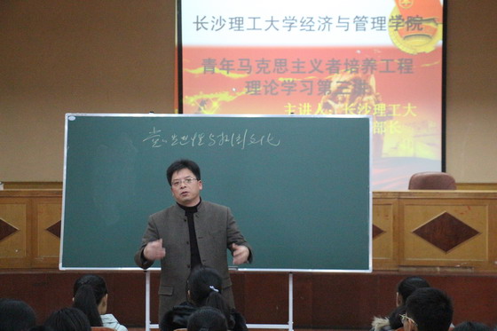 12月6日下午15:00,经管学院青马工程理论培训第三讲在金盆岭校区四教报告厅举行,校党委宣传部王宏部长受邀担任主讲人,并做题为“党员先进性与校园文化”的主题授课。经管学院分团委书记陈钰汀老师、16级辅导员王宝宝老师出席,金盆岭团工委、学生会16分会、社团负责人、16级团支书及班长参与学习。