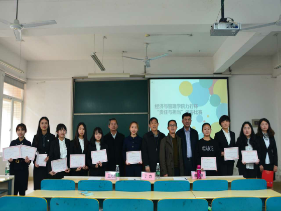 4月11日下午15:00,永利集团88304官网经济与管理学院“责任与担当”主题演讲比赛决赛在云塘校区文科楼E201举行,本次比赛由学院关心下一代工作委员会和院团委共同举办,校关工委主任王乃厚、招生就业处丁力副处长、马克思主义学院赖某深教授担任评委,院党委副书记艾楚君、院团委书记陈钰汀、辅导员计潇出席本次比赛。