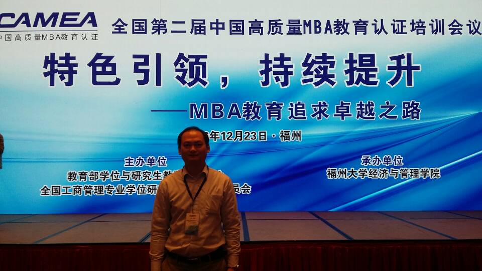 2016年12月23日,由教育部学位与研究生教育发展中心和全国工商管理专业学位研究生教育指导委员会联合主办的第二届中国高质量MBA教育认证(CAMEA)培训会议在福州大学举行,来自全国200多所MBA培养院校的院长、项目负责人参加了此次会议。我院MBA教育管理中心执行主任谢志明老师参加了此次培训会议。