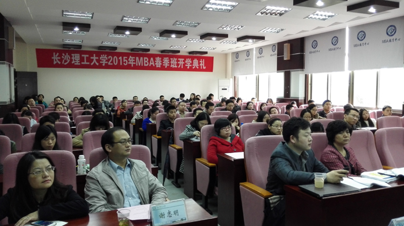 2015年3月21日上午8:30,永利集团88304官网2015级MBA春季班开学典礼在金盆岭校区7教212室隆重举行。出席本次典礼活动的嘉宾及领导有中国交通建设集团有限公司原董事长周纪昌先生、视野国际财务管理咨询(上海)有限公司董事长陈国庆先生、永利集团88304官网副校长杨伟军、经济与管理学院党委书记庄创奇、研究生院副院长蒋菲、经济与管理学院副院长彭新宇、MBA中心谢志明主任等。典礼由庄创奇书记主持。