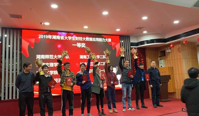 12月29日下午,2019年(第二届)湖南省大学生财务大数据应用能力竞赛在湖南财政经济学院落下帷幕。经济与管理学院财务与会计系派出2支队伍,由喻晓宏、曾倩老师指导,会计17级王志伟等4名同学组成的竞赛代表二队,荣获一等奖;由邓英、邓少鸿老师指导,会计17级卓越班邓佳丽等4名同学组成竞赛代表一队,荣获二等奖;同时永利官网荣获竞赛优秀组织奖。更可喜的是继2018年第一届永利官网荣获2个一等奖后,永利官网又一次荣获一等奖。