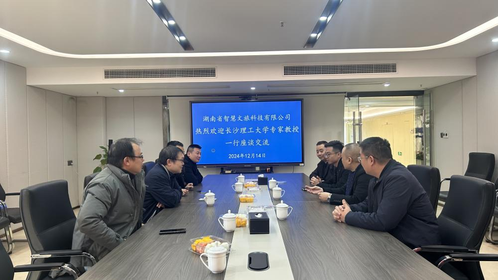 2024年12月16日,永利集团88304官网经济与管理学院副院长何昊、MBA教育中心主任扶缚龙、创新创业教育办公室副主任朱晋及MBA联合会成员一行赴湖南智慧文旅科技有限公司进行访问与学术交流。此次访问旨在加强学术合作与实践对接,推动产学研合作,探讨智慧文旅发展和创新管理模式。