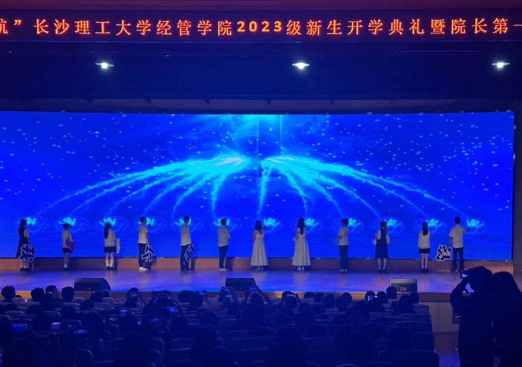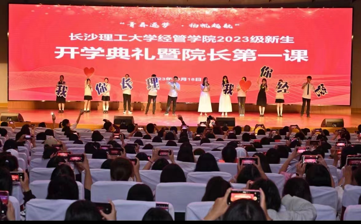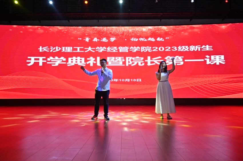 典礼开始前,教师龚世豪、付蔷等与学生们同唱《我爱你,长理》《追梦赤子心》等歌曲,用歌声欢迎2023级新同学,唱响了经管人奋斗青春的蓬勃朝气。在热烈的氛围中,开学典礼正式开始。