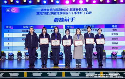 2023年12月2日-3日,由湖南省教育厅主办、湖南大学研究生院、湖南大学公共管理学院承办的湖南省第六届高校公共管理案例大赛暨第六届公共管理学科院长(系主任)论坛在湖南大学大礼堂顺利举办并圆满落幕。我院敖洁教授指导的研究生王梦晗、石璐青、张晗、刘雅杰组成的筑梦乡村团队,经过激烈的角逐,以扎实的学术功底和良好的专业素养荣获湖南省第六届高校公共管理案例大赛三等奖,团队成员王梦晗获“最佳辩手”荣誉称号,永利集团88304官网获评“优秀组织单位”。
