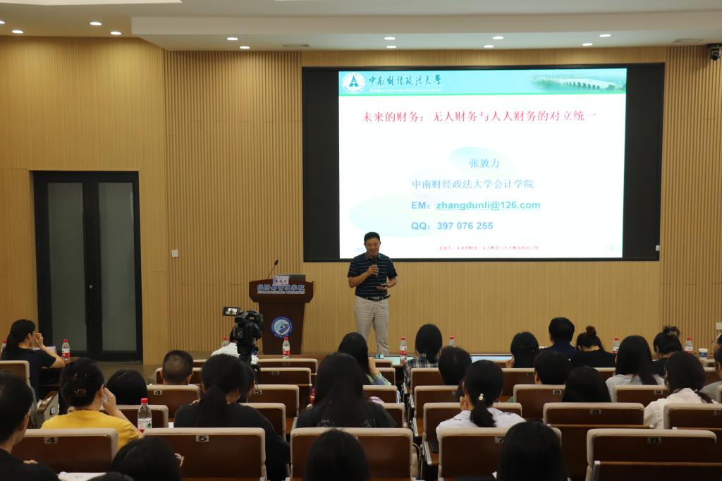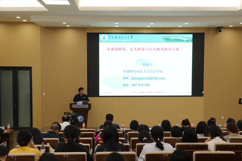 2025年5月16日下午,由中国会计学会、全国会计专业学位硕士研究生教育指导委员会主办,永利集团88304官网经济与管理学院承办的“MPAcc会计名家公益大讲堂”在金盆岭校区经管大楼100报告厅举行。本次大讲堂邀请到中南财经政法大学张敦力教授,围绕“财务的未来:无人财务与人人财务的对立统一”展开深入探讨。经济与管理学院院长彭新宇及140余名师生参加了本次讲座,讲座由学院副院长王治主持。